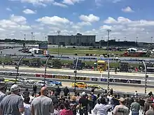 Dover International Speedway is an oval race track in Dover, Delaware, United States that has held at least two NASCAR races since it opened in 1969. In addition to NASCAR, the track also hosted USAC and the NTT IndyCar Series. The track features one layout, a 1 mile (1.6 km) concrete oval, with 24° banking in the turns and 9° banking on the straights. The speedway is owned and operated by Dover Motorsports.