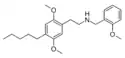 25AM-NBOMe [34] | N-(2-methoxybenzyl)-1-[2,5-dimethoxy-4-pentylphenyl]-2-aminoethane | 2,5-dimethoxy-4-(n-pentyl) | H | 2-methoxyphenyl | |