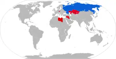 Iraq – unknown number used between 1984 and 1992, likely transferred to Syria.