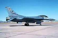 Re-equipped with Block 1, 5 and 10 F-16A/B Fighting Falcon aircraft in late 1982. F-16s carried tail code "LF". In 1988 the squadron began receiving brand new block 42 F-16C/Ds to replace the F-16A/B. Inactivated 1 April 1994 with the phase down of combat training at Luke after the end of the Cold War.