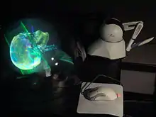 Other technologies have been developed to project light dots in the air above a device. An infrared laser is focused on the destination in space, generating a small bubble of plasma which emits visible light.