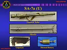 The 9K32 Strela-2 (Russian: Cтрела, "arrow"; NATO reporting name SA-7 Grail) is a light-weight, shoulder-fired, surface-to-air missile (or MANPADS) system. It is designed to target aircraft at low altitudes with passive infrared homing guidance and destroy them with a high explosive warhead.