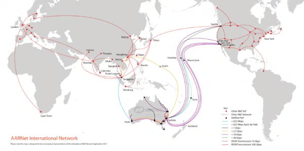 - 2003: AARNet negotiated purchase from Southern Cross Cable of multi-gigabit 'SXTransPORT' trans-Pacific links via diverse paths