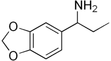 ALPHA (alpha-ethyl-3,4-methylenedioxybenzylamine) is a lesser-known psychedelic drug and a substituted benzylamine. It is also the benzylamine analog of 3,4-methylenedioxyamphetamine (MDA). ALPHA was first synthesized by Alexander Shulgin. In his book PIHKAL on the MDA page, the threshold dosage is listed as 10 mg.[1] At mild threshold dosages (around 10 mg) there are eyes-closed "dreams" with some body tingling, at higher doses (up to 140 mg) was reported to produce a pleasant, positive feeling. This compound is not anoretic at any dose. It lasts about 3 hours. Very little data exists about the pharmacological properties, metabolism, and toxicity of ALPHA.[2]
