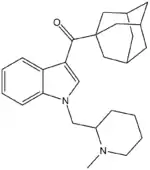 AM-1248 is a drug that acts as a moderately potent agonist for both the cannabinoid receptors CB1 and CB2, but with some dispute between sources over its exact potency and selectivity. Replacing the 3-(1-naphthoyl) group found in many indole derived cannabinoid ligands, with an adamantoyl group, generally confers significant CB2 selectivity,[1] but reasonable CB1 affinity and selectivity is retained when an N-methylpiperidin-2-ylmethyl substitution is used at the indole 1-position.[2][3] The related compound 1-pentyl-3-(1-adamantoyl)indole was identified as having been sold as a cannabinoid designer drug in Hungary in 2011, along with another synthetic cannabinoid AM-679.[4]