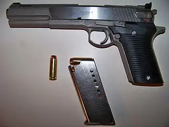 The AMT Automag V is a large single action semi-automatic pistol made by Arcadia Machine and Tool (AMT). The weapon was created by Harry Sanford, inventor of the original .44 AutoMag pistol.