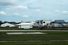 An HDNet production trailer is stored between launches at the Kennedy Space Center press area. NASA Space Shuttle launches aired on HDNet.