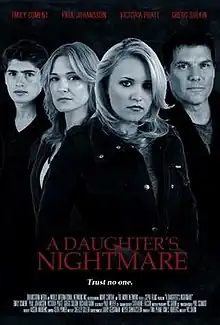 A Daughter's Nightmare is a 2014 American TV thriller and suspense film starring Emily Osment, Gregg Sulkin, Paul Johansson and Victoria Pratt. It was directed by Vic Sarin and it was released in the United States on May 3, 2014, on Lifetime network. This movie was filmed in Kelowna, British Columbia, Canada. The director of this film, Vic Sarin, made eight films in the Okanagan region since he first came to Kelowna in 2012 to make the Lifetime TV thriller, A Mother's Nightmare.[1]
