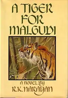 A Tiger for Malgudi is a 1983 novel by R. K. Narayan told by a tiger in the first person. Deeply moving is the attachment of the tiger to the monk and the monk's care for the tiger. R. K. Narayan consulted with noted tiger expert K. Ullas Karanth on the writing of this novel. Narayan used the teaching of Buddha's enlightenment in this particular novel. The novel is set in the fictional town of Malgudi.