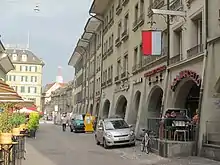 The Aarbergergasse ('Aarberg Lane') is one of the streets in the Old City of Bern, the medieval city center of Bern, Switzerland. It was originally the most important of the five streets that were part of the Äussere Neustadt, which was the section outside the city walls. One fountain, the Ryfflibrunnen on the Aarbergergasse is listed on the Swiss inventory of heritage site of national significance[1] and it is part of the UNESCO Cultural World Heritage Site that encompasses the Old City.