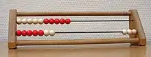 The red-and-white abacus is used in contemporary primary schools for a wide range of number-related lessons. The twenty bead version, referred to by its Dutch name rekenrek ("calculating frame"), is often used, either on a string of beads or on a rigid framework.[50]