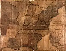 Abraham Bradley Jr. (February 22, 1767 – May 7, 1838) was an American lawyer, judge, and cartographer, who was an assistant postmaster general for 30 years during the earliest history of the United States Post Office Department. Bradley was responsible for moving the federal government's post office from Philadelphia, Pennsylvania, to the new capital at Washington, D.C., briefly hosting the national post office in his own home. The continuity brought by Bradley's long employment during the tenure of five United States postmasters generals helped establish the budding postal service as a reliable provider. While not trained as an artist or cartographer, Bradley created innovative and detailed postal route maps that improved the office's efficiency. In 1796, Bradley drew one of the first comprehensive maps of the United States; it "represented the first clear cartographic break in European-dominated map making and introduced a new, more distinctly American style of cartography to the United States."[1]