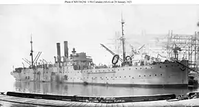 Abe took his second cruise between 1920–22. Though he definitely traveled from New London to the Naval base in San Pedro and returned to New London via a land route, little is known at this time of any additional Naval travels, as even in peacetime he was reluctant to record the movement of Navy ships in his biography. In San Pedro, he spent time delivering papers, giving boxing training, and performing odd jobs aboard the USS Camden (AS-6), a four hundred foot, highly armed, slow-moving submarine tender with a crew of around 300, confiscated from the German Navy in WWI. She sailed from her home port at New London's submarine base to San Pedro, where she arrived on June 24, 1921. The San Francisco Examiner noted that Abe took a world cruise during this period, but recorded no ports of call, though England, France, and western Europe seem likely stops as his book notes he went there, and previous cruises omitted these destinations.[103][104] Prior to his cruise, he wrote to and met briefly with Theodore Roosevelt Jr., Assistant Secretary of the Navy, to gain rights of passage to the coast. In a letter of May 1921, the Secretary thanked Hollandersky for his visit and mentioned he was aware of Abe's plans to visit the West Coast.[105] Hollandersky boxed sailor Billy Capelle in San Pedro, California, in February 1922.