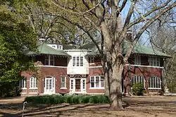 The Abramson House is a historic house at 127 Crescent Heights in Holly Grove, Arkansas. It is a two-story wood-frame structure, with brick veneer walls and a green tile roof. Designed by Memphis, Tennessee architect Estes Mann and built in 1921–22, it is a particularly fine local example of Craftsman style architecture. It is an L-shaped structure, with arched openings (one housing a recessed porch, the other an enclosed former porch) at the ends of one leg, and half-timbered stucco projecting sections with oriel windows.[2]