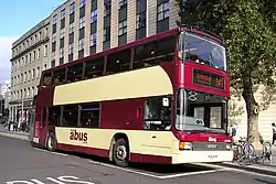 In 1998, Abus operated the first low floor double deck bus in the world, an Optare Spectra bodied DAF DB250. In 1999, it began operating co-ordinated services from Castle Cary railway station to the Glastonbury Festival.[3][4] By 2016, it was operating route X9 from Bristol to Nailsea under contract to First West of England.[5]