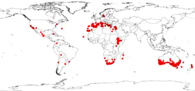 - Acacia saligna (GBIF) Map of herbaria records showing something of its invasiveness