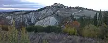 Two main types of badlands[1] can be found in the area of the Crete Senesi, the Valdorcia, and the Volterra areas of Tuscany: Biancana (from Bianco, white, due to the light color of the clay and of the saline efflorescence) and calanco (local name for a type of gully or ravine). Both are linked to gully erosion processes, the former intermingled mainly with subsurface erosion and the latter with mass movements. Biancanas can also be found in Basilicata and in Calabria. The calanco landscape is common all along the Apennines and in many parts of the Alps. Both calancos and biancanas were used as grazing ground, with an almost annual burning of the vegetation to remove brush and favor herbaceous cover more palatable for sheep, goats, and cattle. Both practices were abandoned in the 1990s to favor measures to preserve biodiversity and geo forms under the EU Natura 2000 program. Conservation has almost stopped erosion in both types of badlands and vegetation now covers the majority of the area that was once bare slopes. As there is a strong interrelationship between vegetation biodiversity and erosion/deposition processes, biodiversity is also threatened and the biancana landscape is forecast to disappear entirely within 20-40 years as brush cover expands.[2][3][4] Spots where the traditional forms can still be observed are scattered in the Crete Senesi and the Valdorcia, included within the quadrangle of vertices [43°16'10.58"N ; 11°15'59.30”E], [43°18'28.68”N; 11°39'4.92”E], [42°43'32.58”N; 11°42'22.98”E], [42°45'49.22”N; 11°58'41.90”E]. Leonina and Lucciola Bella [43° 2'4.85"N; 11°45'35.75"E] are two of the best sites for walking through the biancanas, while Chiusure - Monte Oliveto Maggiore (i.e., the ancient Accona) and Radicofani [42°55'8.14"N; 11°44'38.82"E] host the most impressive calancos.