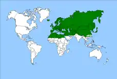 A. rumicis is distributed throughout the Palearctic. It is common in northwestern China, the Korean Peninsula, and Japan, although it has also been found in other parts of Eurasia, including Russia.[6] A. rumicis is found in almost all parts of Europe, though it is absent in some areas of north-western Scandinavia. There has been much research about the species in England and Scotland.[1]