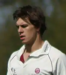 Adam Dibble was born in Exeter, Devon on 9 March 1991.[1] As a right-arm fast-medium bowler, he played age-group cricket for Devon County Cricket Club before joining Somerset in 2008.[2] During 2009 and 2010, he played for Somerset's second team, alongside club cricket for Sidmouth Cricket Club. His strong performances for the second team led to his senior debut in 2011, during the Clydesdale Bank 40, a one-day competition. He played four matches during that competition, taking five wickets at a bowling average of 34.[3] Later that season he made his first-class debut, appearing in two County Championship matches,[4] during which he took two wickets.[5] He travelled with the Somerset team to compete in the 2011 Champions League Twenty20, where he played against the Warriors in the group stage and the Mumbai Indians in the semi-final. Those were his only senior Twenty20 appearances for Somerset, and he claimed two wickets at an average of 22.[6]