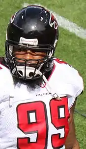On March 12, 2015, Clayborn signed with the Atlanta Falcons.[27][28] On March 9, 2016, he re-signed with the Falcons on a two-year deal worth $9 million.[29] He played in 13 games with seven starts recording 22 tackles and 4.5 sacks.[30] In the divisional round of the playoffs, Clayborn suffered a torn bicep and was placed on injured reserve on January 17, 2017, causing him to miss the rest of the playoffs.[31] Without Clayborn, the Falcons reached Super Bowl LI where they lost 34–28 in overtime to the New England Patriots.