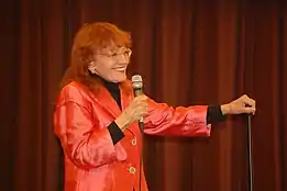 She eventually became a success in the New York City comedy club circuit, and became the first woman emcee at Catch a Rising Star.[13] She also managed the club for years, and served as a mentor for young comics.[4][18] She started out by working in the club and checking coats for people. She spent seven nights a week in the club trying to get a chance to perform.[17] She also considered comedian Richard Belzer to be her mentor, as he had helped her get her start at Catch a Rising Star.[1] In 1981 she was the only woman emcee in any of the New York clubs, in part because she was adept at dealing with hecklers.[13][19]