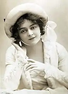 In 1903 Augarde appeared at the Gaiety Theatre in London's West End as a replacement player in the role of Dora in the hit musical comedy The Toreador, produced by George Edwardes.[12] Not long afterwards, at the Lyric Theatre, she played Renée, an ingenue part in another Edwardes musical, The Duchess of Dantzic, which ran for 236 performances.[13] W. J. MacQueen-Pope described her as "petite, wide-eyed, sweet-voiced and wistful" in the role.[14] The following year she created the title role in Lady Madcap, with a book by Nathaniel Newnham-Davis, music by Paul Rubens and lyrics by Percy Greenbank and Rubens, at the Prince of Wales Theatre, London.[15]