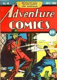 Adventure Comics #40 depicting the first superhero cover of the series featuring Sandman (Wesley Dodds) in the cover. Art by Creig Flessel.