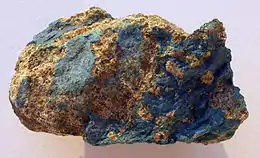 Its name comes from a Greek root "aerinos," meaning "atmosphere" or "sky blue".[2] It was first described by Lasaulx (1876) from a specimen in the Wroclaw museum that was obtained in Aragon, Spain.[6] In 1882, the geologist Luis Mariano Vidal found the mineral in situ in Caserras del Castillo, a locality that currently belongs to the municipality of Estopiñán del Castillo, in Huesca (Spain).[7]
