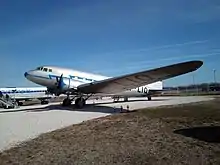 This Il-14 originally belonged to the 226th Independent Mixed Aviation Regiment, of the Southern Army Group of the Soviet Red Army. In 1981 it was withdrawn from service and stored for six years in Mirhorod (today in Ukraine), then in Tököl Airport, Hungary. In late 1987 it was flown to Ferihegy where it became the first plane of the newly founded aviation museum. Since then it was moved twice, in 1991 and in 2017, when the museum moved to a new place. Its total flight time is 5928 hours.[7] In 2009-2010 it has been restored. Originally it was only planned to be repainted in period Malév livery (while this specific plane has never been owned by Malév, the airline had Il-14 planes in its fleet), but since the plane was in a very good condition even after 25 years of disuse, repairs were done on both engines[8][9] and visitors can watch them being started once a month.