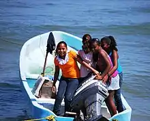 The Costa Chica ("small coast" in Spanish) extends from Acapulco to the town of Puerto Ángel in Oaxaca in Mexico's Pacific coast. The Costa Chica is not well known to travelers, with few attractions, especially where Afro-Mexicans live. Exceptions to this are the beaches of Marquelia and Punta Maldonado in Guerrero and the wildlife reserve in Chacahua, Oaxaca.[59] The area was very isolated from the rest of Mexico, which prompted runaway slaves to find refuge here. However, this has changed to a large extent with the building of Fed 200 which connects the area to Acapulco and other cities on the Pacific coast.[60] African identity and physical features are stronger here than elsewhere in Mexico as the slaves here did not intermarry to the extent that others did. Not only are black skin and African features more prominent, there are strong examples of African-based song, dance and other art forms.[61][62] Until recently, homes in the area were round mud and thatch huts, the construction of which can be traced back to what are now the Ghana and Ivory Coast.[59] Origin tales often center on slavery. Many relate to a shipwreck (often a slave ship) where the survivors settle here or that they are the descendants of slaves freed for fighting in the Mexican War of Independence.[14][63] The region has a distinct African-influenced dance called the Danza de los Diablos (Dance of the Devils) which is performed for Day of the Dead. They dance in the streets with wild costumes and masks accompanied by rhythmic music. It is considered to be a syncretism of Mexican Catholic tradition and West African ritual. Traditionally the dance is accompanied by a West African instrument called a bote, but it is dying out as the younger generations have not learned how to play it.[14][63]