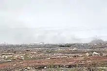 According to statistics from the World Bank, in large cities like Accra and Lagos, the majority of households have owned televisions and computers for decades.[5] The UN Report "Where are WEEE in Africa" (2012) disclosed that the majority of used electronics found in African dumps had not in fact been recently imported as scrap, but originated from these African cities.[6] Agbogbloshie is situated on the banks of the Korle Lagoon, northwest of Accra's Central Business District.[7][8] Roughly 40,000 Ghanaians inhabit the area, most of whom are migrants from rural areas.[2][7] Due to its harsh living conditions and rampant crime, the area is nicknamed "Sodom and Gomorrah".[9]