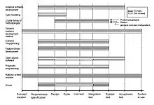 Most agile development methods break product development work into small increments that minimize the amount of up-front planning and design. Iterations, or sprints, are short time frames (timeboxes) that typically last from one to four weeks. Each iteration involves a cross-functional team working in all functions: planning, analysis, design, coding, unit testing, and acceptance testing. At the end of the iteration a working product is demonstrated to stakeholders. This minimizes overall risk and allows the product to adapt to changes quickly.[27] An iteration might not add enough functionality to warrant a market release, but the goal is to have an available release (with minimal bugs) at the end of each iteration.[28] Through incremental development, products have room to "fail often and early" throughout each iterative phase instead of drastically on a final release date.[29] Multiple iterations might be required to release a product or new features. Working software is the primary measure of progress.[26]