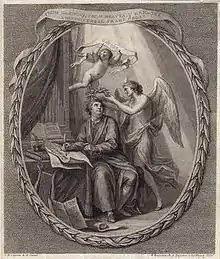 According to John Mainwaring, Handel's first biographer, Agrippina was composed in the three weeks following Handel's arrival in Venice in November 1709, a theory supported by the autograph manuscript's Venetian paper.[13] In composing the opera Handel borrowed extensively from his earlier oratorios and cantatas, and from other composers including Reinhard Keiser, Arcangelo Corelli and Jean-Baptiste Lully.[14] This practice of adapting and borrowing was common at the time but is carried to greater lengths in Agrippina than in almost all of Handel's other major dramatic works.[14] The overture, which is a French-style two-part work with a "thrilling" allegro,[15] and all but five of the vocal numbers, are based on earlier works, though subject in many cases to significant adaptation and reworking.[11]