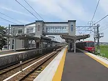 The station has two island platforms connected by a footbridge. The station is staffed.