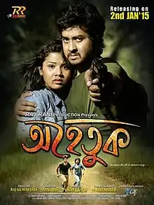 Ahetuk (Assamese: অহেতুক) is a 2015 Indian Assamese language romantic thriller film directed by Bani Das, veteran Assamese film director and a screenwriter who delivered the Assamese audiences some blockbusters like Maharathi, Mon, Kadambari. His movies are popularly known for an individualistic stamp of visual splendor which is a combine package of romance, action and drama. Ahetuk is another entertainment package, with Gunjan Bhardwaj and Amrita Gogoi in lead role. Actor Tapan Das is also playing an important character in this film. A deep quest for the meaning of those aspects of life which are really meaningless! That's ‘Ahetuk’ for you—a journey in celluloid that tries to depict how we chase our desires in life and often hit a blank wall of nothingness. Produced by Raj Kumar Jain this film was released on 2 January 2015.[1][2]