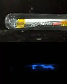 The spark is guided over a quartz surface to improve the light output and benefit from the cooling capacity, making the flash faster.[3][4] This has a negative effect in the form of quartz erosion because of high energy discharge.