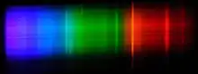 Since the spark gap discharges in air generating a plasma, the spectrum shows both a continuum and spectral lines, mainly of nitrogen since air is 79% nitrogen. The spectrum is rich in UV but covers the entire visible range down to infra-red. When a quartz tube is used as ignition tube, it shows a clear phosphorescence in blue after the flash, induced by the UV.