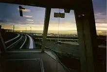 The monorail opened in 1996 and initially served only as an airport circulator, a service which allows passengers to transfer between airport terminals or concourses.[2][3] The monorail track was refurbished and extended to the NEC, with construction beginning in 1997. The system reopened for service on October 21, 2000.[4] When first opened in 1996 a fleet of 12 six-car trains ran on the network. It was later expanded to 18 six-car trains.[5]