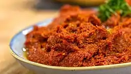 - Muhammara or acuka, a hot pepper dip in Levantine cuisine