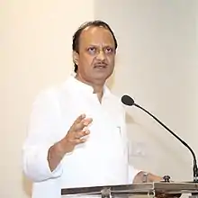 Ajit Anantrao Pawar (Marathi pronunciation: [əd͡ʒit̪ pəʋaːɾ]; born 22 July 1959) is an Indian politician. He is the Leader of the Opposition in Maharashtra Legislative Assembly,[2] and was the 8th Deputy Chief Minister of Maharashtra in his latest stint as a minister. [3][4] He was guardian minister for the District of Pune, India.[5]