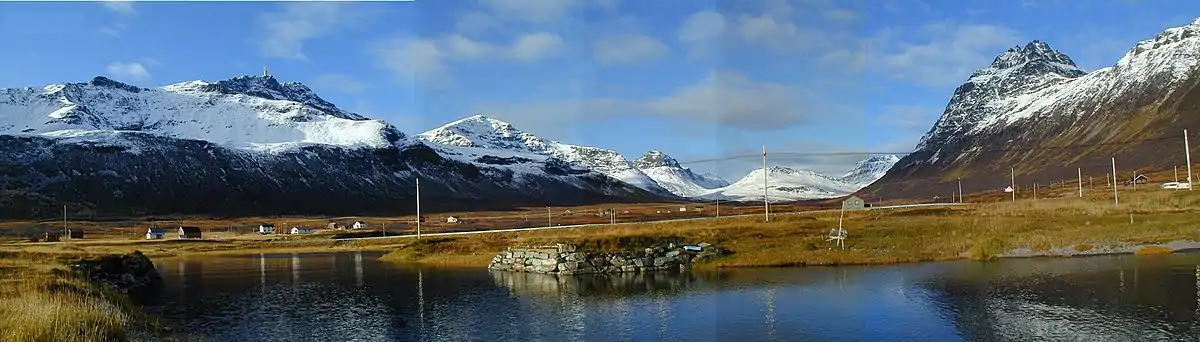 Akkarvik is a small village along the Langfjorden in Skjervøy Municipality, in the northern part of Troms og Finnmark county, Norway. It is located about 14 km (8.7 mi) south of the village of Årviksand and about 5 kilometres (3.1 mi) west of the village of Arnøyhamn on the south side of the island of Arnøya. It has been populated since the 17th century. At its peak during the 1950s, about 400 people lived there. There was a shop, post office, and a bakery. By the year 2001, however, the population has dwindled down to 24 people in 14 private homes.[2] In 2021 the population are down to 10.