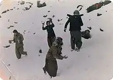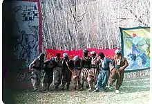 The Communist Party made a deal with the Patriotic Union of Kurdistan (PUK), one of the two main Kurdish factions. However, only two weeks after the deal with PUK, the Communist Party shifted its alliances to the arch-rival of PUK, the Kurdistan Democratic Party (KDP). This shift of alliance was motivated by the willingness of PUK to reach an agreement with Saddam Hussein's regime. The immediate result of the shift was that al-Ansar was put in the line of fire between the warring Kurdish factions. In May 1983 al-Ansar forces entered the Pasht Ashan area, a zone that both PUK and KDP claimed as part of their sphere of influence. PUK forces attacked the Communist Party headquarters, and massacred 150 al-Ansar fighters and other Communist Party members.[3] A radio station run by the Communist Party was destroyed by the PUK peshmerga. The PUK peshmerga also seized ammunitions and food supplies of al-Ansar. Several Communist Party members, including members of the party politburo, were captured by PUK. After the attack al-Ansar was no longer en effective guerrilla force.[3]