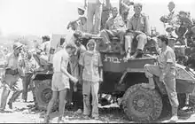 Al-Burj was occupied by the Israeli Army on July 15, 1948, during the second phase of Operation Dani. The Arab Legion counterattacked the following day with two infantry platoons and ten armoured cars but were forced to retreat. According to the Haganah 30 Arabs were killed and four armoured vehicles captured with 3 Israelis killed. Aref al-Aref records around 13 Legionaires killed.[2][5] Two elderly women and men remained. On the 23 July, one, a military cook, was sent out to pick vegetables. In his absence the other three were led to a house which, when an antitank shell missed, was blown up with six grenades. Two died: the surviving woman was then executed, and their bodies torched. The cook, on returning, didn't believe the story that they had been sent to a hospital in Ramallah, and some time later was executed with four bullets.[21] In 1992 the village site was described: "Only one crumbled house remains on the hilltop. Cactuses and wild plants grow on the site. The nearby settlements uses the village for hothouse agriculture."[22]