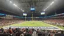 The Alamodome is the site of the annual Alamo Bowl, which matches the second-choice teams from the Pac-12 Conference and the Big 12 Conference.[16] The 2006 Alamo Bowl between the Texas Longhorns and the Iowa Hawkeyes was attended by 65,875, which set a facility-record crowd for a sporting event,[17][18][19] only to have that record broken by an Alamo Bowl event the next year between Texas A&M and Penn State, which drew 66,166 attendees.[20]