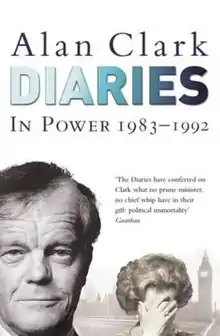 British politician Alan Clark kept a regular diary from 1955 until August 1999 (during his second spell as a Member of Parliament) when he was incapacitated due to the onset of the brain tumour which was to be the cause of his death a month later. The last month of his life would be chronicled by his wife, Jane.