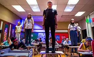 Albany Park Theater Project was cofounded in April 1997 by David Feiner and the late Laura Wiley. Moving about the North Side in the vicinity of Lawrence Avenue, APTP would move from Horner Park, to a church basement, to Jensen Park, before finally settling in 2001 in its current home is at Eugene Field Park, where APTP is a Chicago Park District Arts Partner in Residence.[5][6] Through weekly workshops at the park as well as workshops at Roosevelt High School, APTP recruited teens without theater experience between the ages of 13 and 20, and trained them through theater games, reading, and more to promote their skills as youth artists. APTP's first production performed at Eugene Field Park was 2001's Matches in the Dark. After this production, APTP began to receive attention from Chicago press and theater critics and writers such as the Chicago Tribune and Chicago Sun-Times.[7][8][9] When APTP's first group of high school seniors were about to graduate, APTP began a college counseling program that has gone to send over 90% of its participants to college, where 80% graduate by age 24 (seven times the national rate for low-income students). In 2015, APTP received a $100,000 grant from the suburban Chicago chapter of Impact100 to create a full scale version of Learning Curve, an immersive theater production about Chicago Public Schools created with nationally-acclaimed Third Rail Projects of Brooklyn, New York.[10][11] In February 2016, APTP received a $400,000 grant from the MacArthur Foundation and in July 2016, Learning Curve had its world premiere, receiving wide acclaim and national attention as the first large-scale, immersive theater show devised and performed by teen artists.[12][13] APTP has had a longterm relationship with the internationally acclaimed Goodman Theatre, Chicago's oldest currently active nonprofit theater organization.[14] Board members of the theater include Northwestern University professor and actor Henry Godinez and former Executive Vice President, Global Government Relations for Royal Dutch Shell Roxanne Decyk.