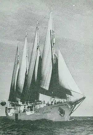 The expedition was carried out on board the newly built training ship Albatross. The 70 meter long and 11 meter wide vessel was a combined motor and sailing vessel. The Boström line (Broströmskoncernen) had just built the student ship to train prospective ship's officers and this vessel with associated crew was lent to the expedition.[2]