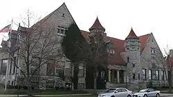 D'Oench was a partner with Bernhard Simon in the firm of D'Oench and Simon.[6] In 1898, the firm designed a large Renaissance Revival-style limestone in the now Crown Heights North Historic District.[7] D'Oench partnered with Joseph W. Yost to form the firm of D'Oench & Yost.[8] The firm worked on designs for the Carnegie Library in Sandusky, Ohio (1901);[9] W New York Union Square (formerly Germania/Guardian Life Insurance Company Building, 1910);[10][11] the William R. Grace Company building addition;[12] and Richard Morris Hunt's New York Tribune Building.[13] The Carnegie Library and the W New York Union Square are on the National Register of Historic Places.[14][15]