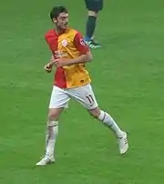 On 3 September 2011, Riera completed a €3 million move to Turkish side Galatasaray, signing a four-year deal.[34] He scored his first goal in the Süper Lig on 25 January 2012 in a 4–0 home defeat of Ankaragücü, and was an habitual first-choice in his first season as the Istanbul-based team won the national championship; he was also involved, however, in a punching session with teammate Felipe Melo just before the playoffs started.[35]