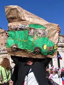| Attributes | Jesuit robes, an old green van |